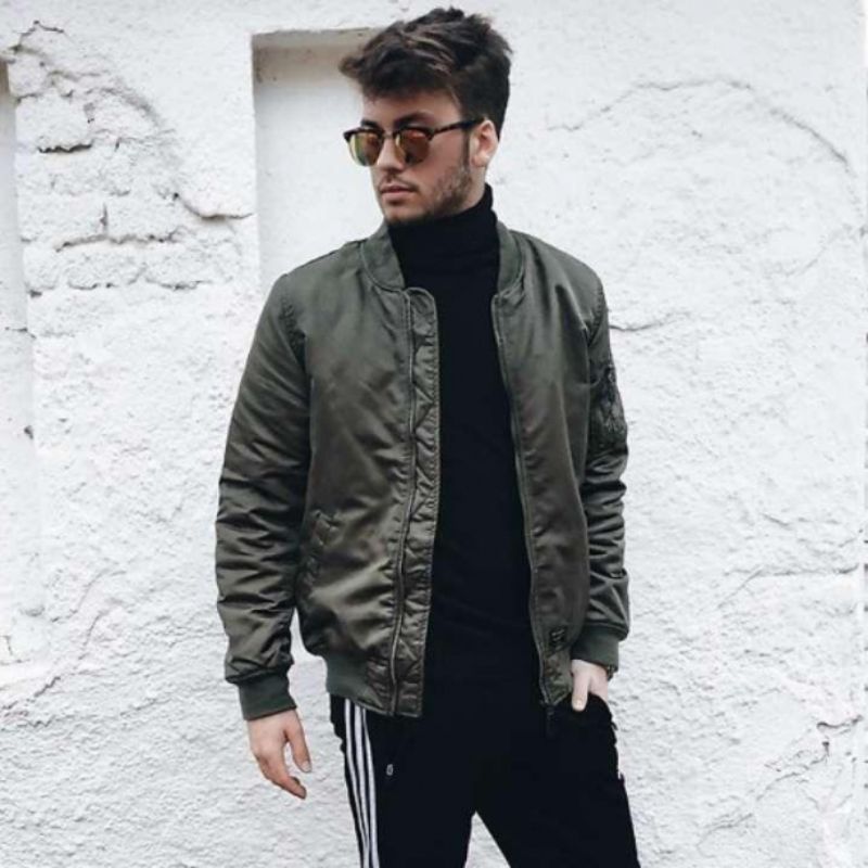 Để trông thật nổi bật khi diện áo len nam cổ lọ thì chàng không thể bỏ qua được mẫu áo khoác bomber. Đây được biết là thiết kế vô cùng cá tính, phù hợp xu hướng thời trang nên rất được cánh mày râu yêu thích.